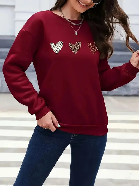Dame Leopardemønstret Hjertegenser - Mykt Fôret Casual Overdel