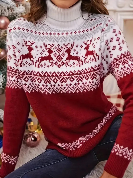 Dame Julegenser med Reinsdyrmønster - Festlig Høyhalset Design
