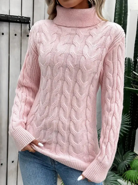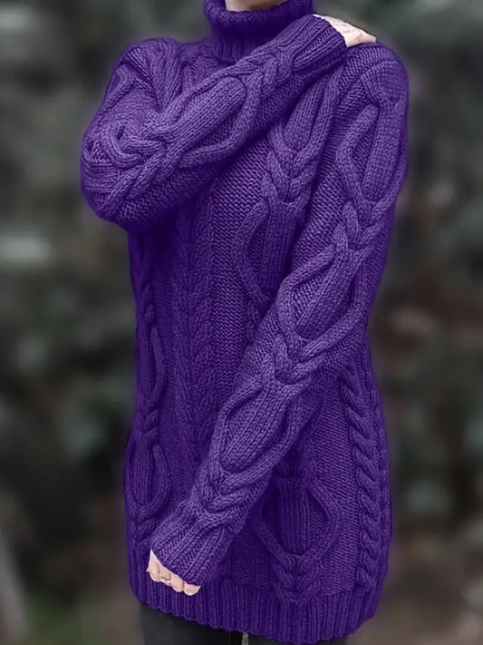 Dame Flettestrikket Høyhalset Genser - Elegant Langermet Pullover