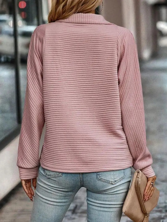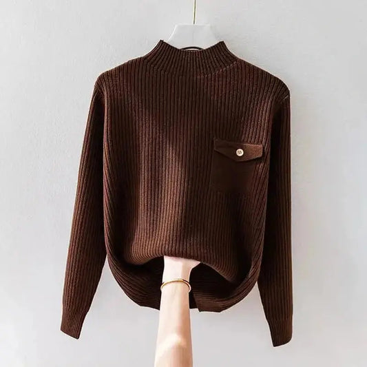 Luna – Elegant Ribbestrikket Topp med Knapplomme