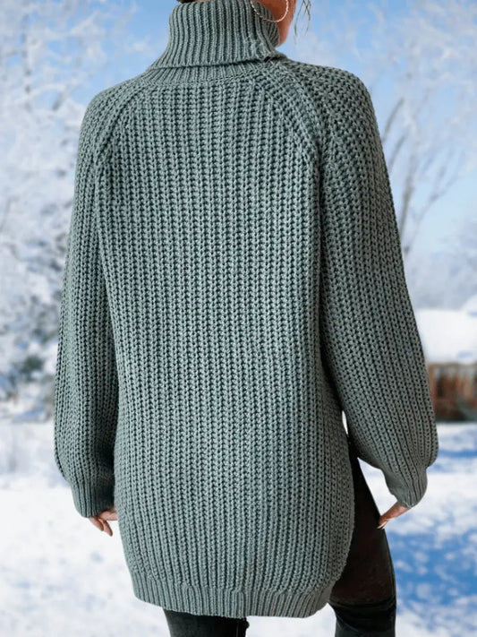 Rullekrage Strikket Genser med Splittkant – Allsidig Design for Høst og Vinter