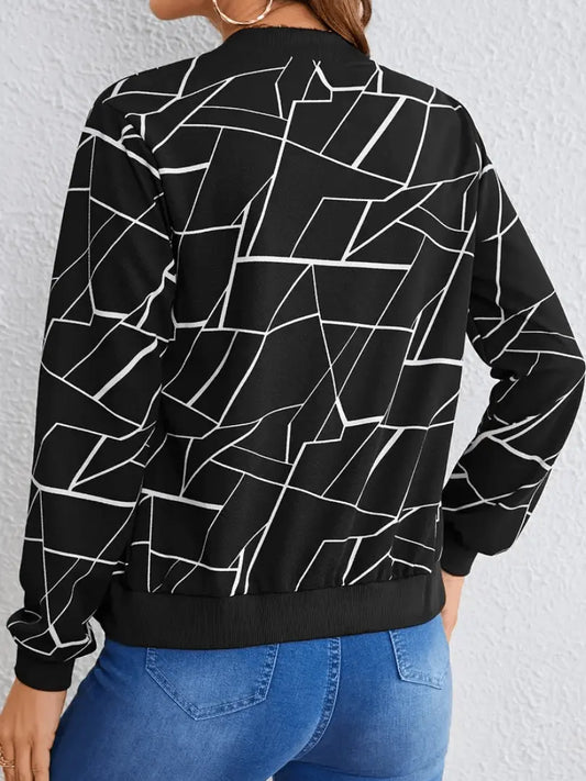 Damejakke med Geometrisk Mønster og Glidelås - Uformell og Trendy Ytterjakke