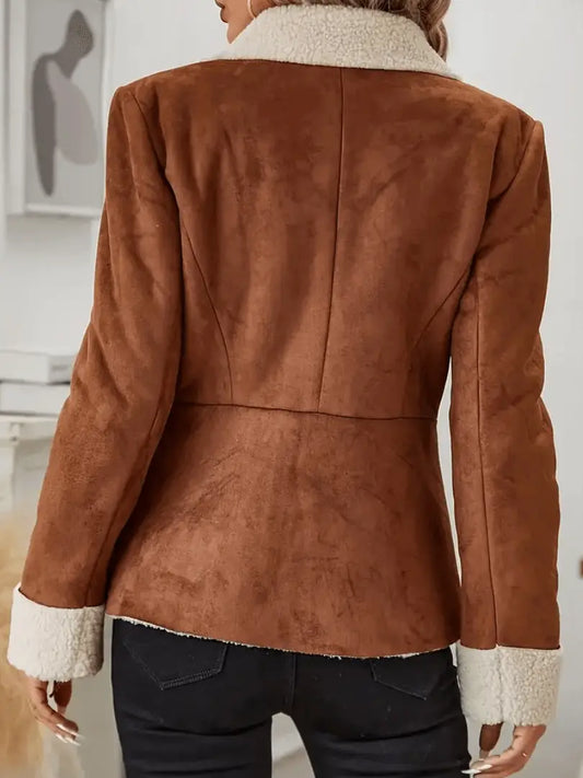 Dobbeltbrystet Fuzzy Kragefrakk for Kvinner - Komfortabelt og Stilig Yttertøy