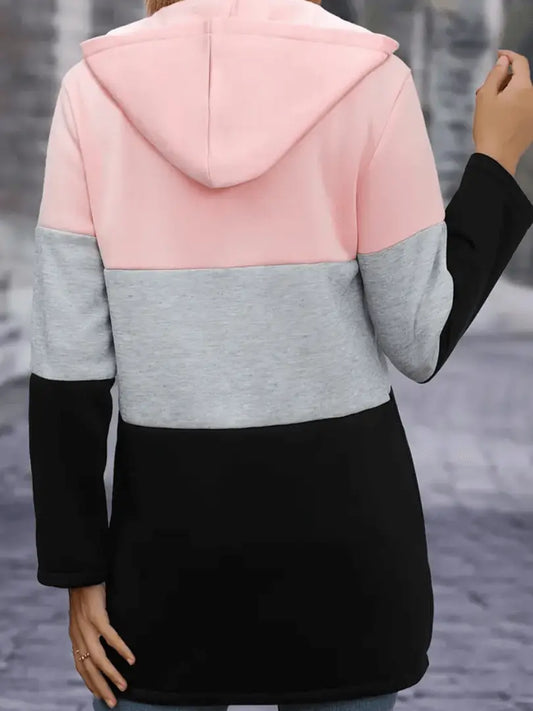 Damejakke med Fargeblokk og Hette - Uformell og Stilfull Ytterjakke