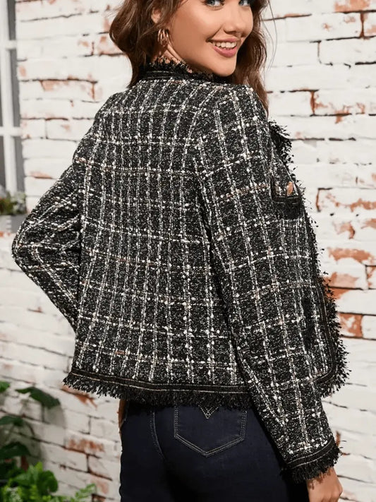 Damejakke i Tweed med Knapper - Klassisk og Sofistikert Ytterjakke