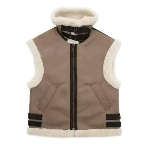 FashionWave - Stilfull Ærmeløs Læderjakke i Imiteret Pels for Unike Utseender