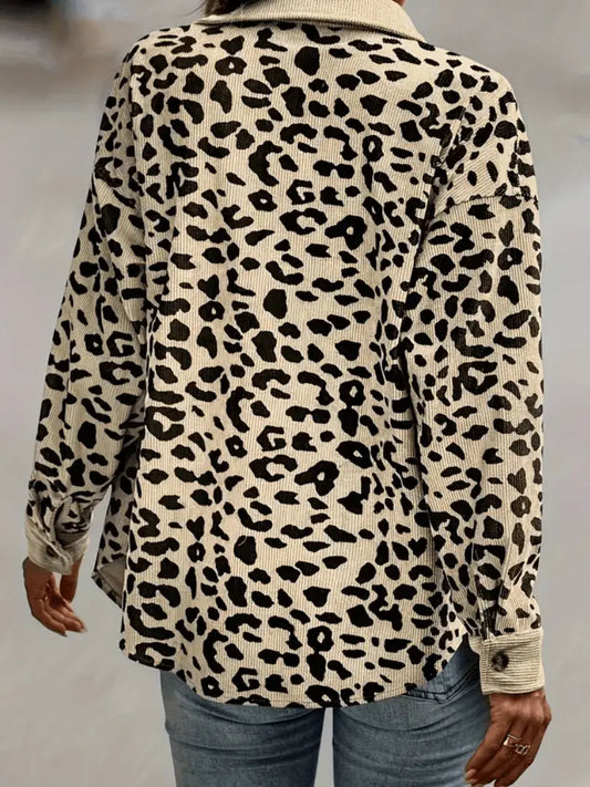 Leopard Print Skjortejakke - Avslappet Skjortejakke med Knappelukking og Klassisk Krage