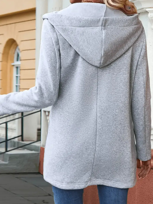 Glidelås Hettejakke med Lommer - Avslappet Langermet for Høst og Vinter