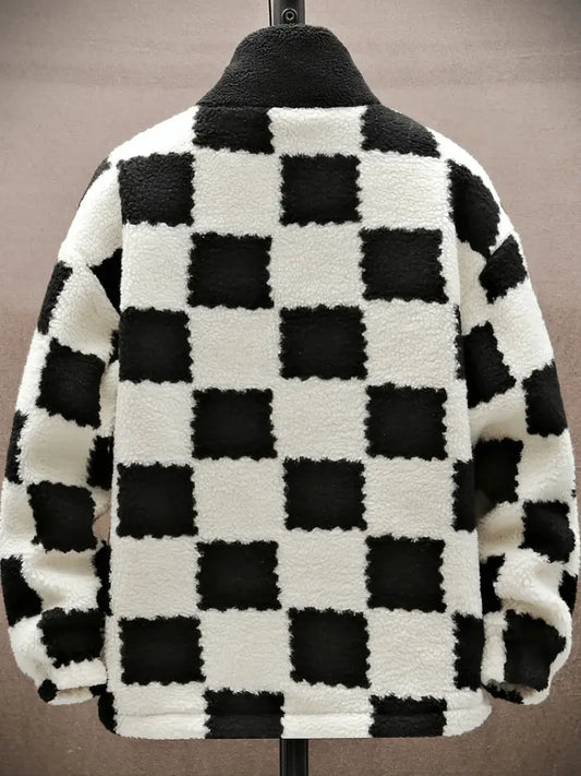 Koselig Rutet Jakke i Lammeull - Varm Vinterjakke med Polar Fleece-fôr for Menn og Kvinner