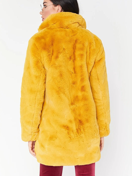 FauxFur Elegance - Trendy Vinterjakke i Fuskepels for Kaldt Vær