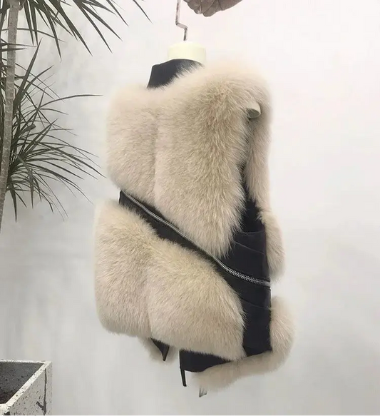 FurFashion - Faux Fur Patchwork Vest til Kvinder for Trendy Utseende