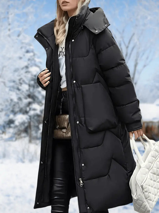 Lang vinterjakke for kvinner – uformell og varm, mellomsnittlig lengde med glidelåsdetaljer