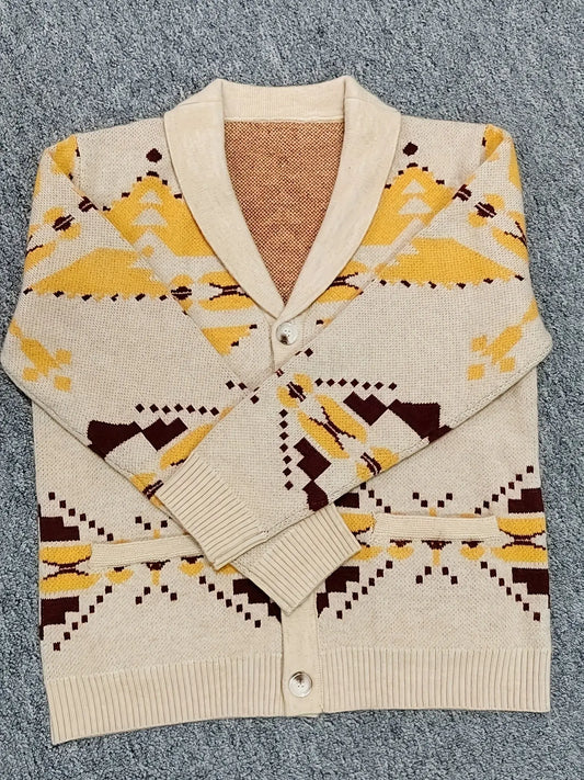 TrendCraft - Cardigan med Geometrisk Trykk for Menn i Unik Stil