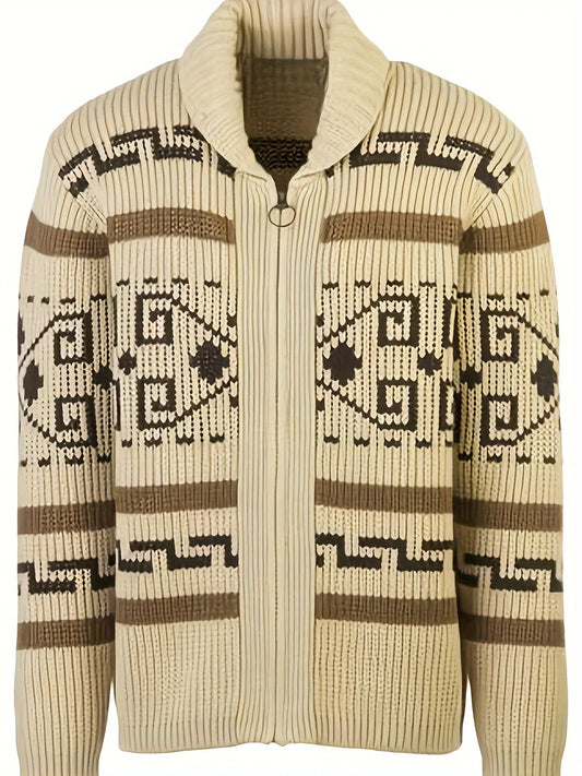 VortexStyle - Herre Jacquard Strikkegenser med Abstrakt Mønster
