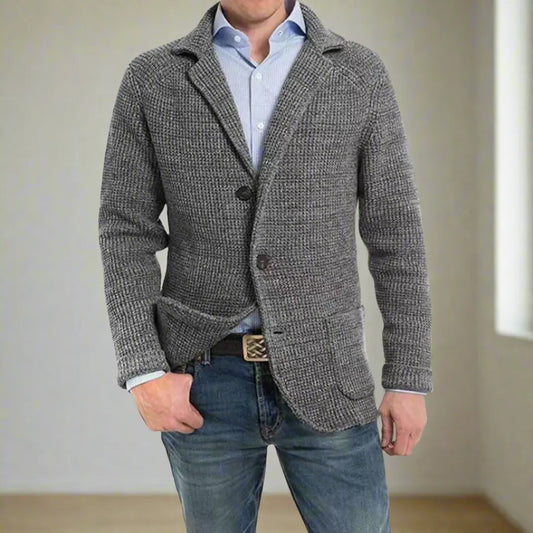 UrbanVogue - Herrejakke i Strikk med Dobbeltspent Front og Høy Hals