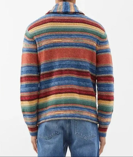 VibrantWear - Regnbuefarget Cardigan for Menn i Unik Stil