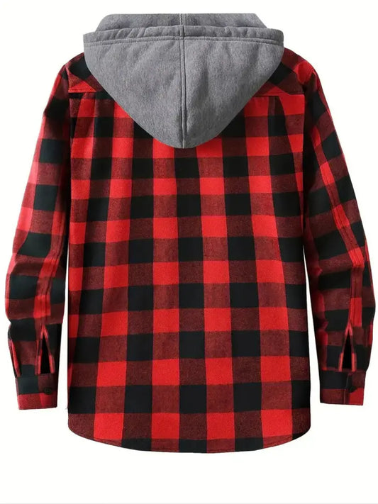 Herre Rutete Hettejakke - Avslappet Skjortedesign med Myk Innerfôr