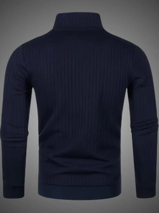 Herre Ribbestrikket Genser - Ståkrage med Halv Glidelås