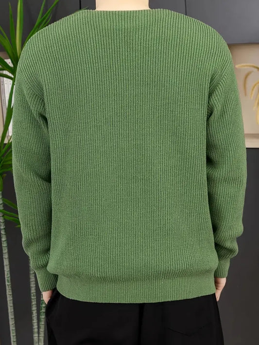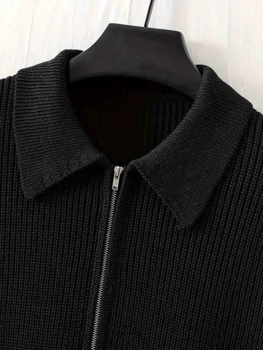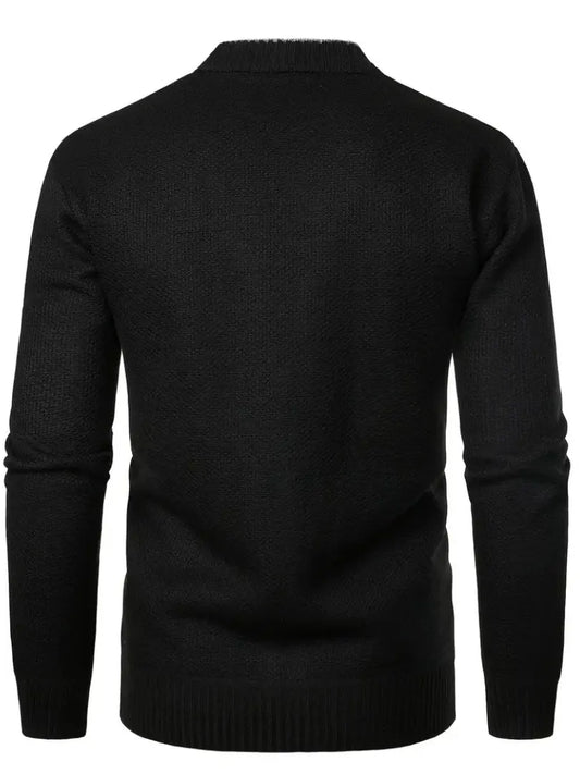 Herre Strikket Halv Glidelås Genser - Avslappet Design med Lange Ermer
