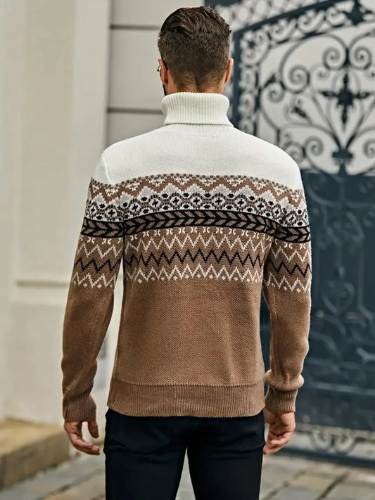 Herre Retro Høyhalset Genser – Stilig og Varm Strikket Pullover