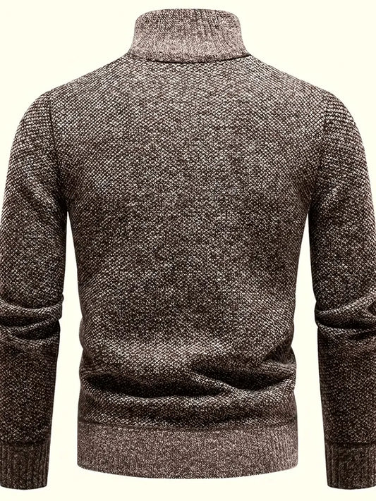 Herre Strikket Genser med Fleecefor - Varm Høy Hals med Glidelåsdetalj