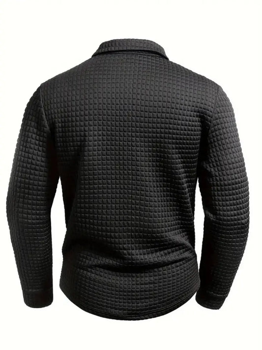 Herre Teksturert Langermet Poloskjorte - Casual, Tykt og Elastisk Stoff