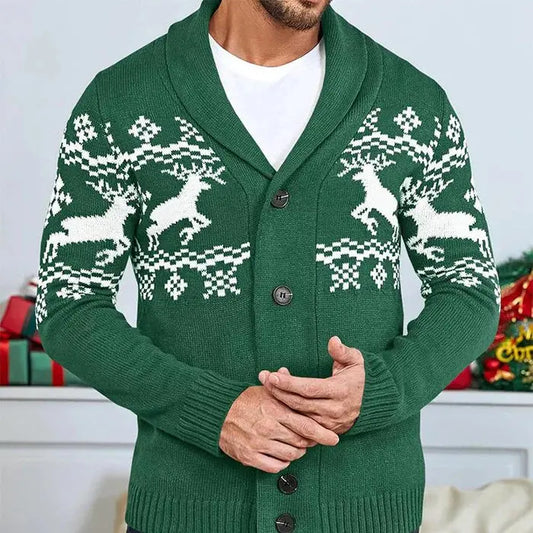 NordEdge - Herrekardigan med Festlig Elgmønster