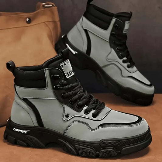 Herres PU-skinn Tursko – Myk Såle Snørede Platåsko for Utendørs Vandring