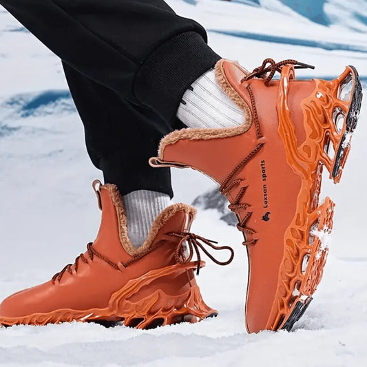 Herreskinnstøvler – Vintertermiske tursko med fleecefôr og vindbeskyttelse