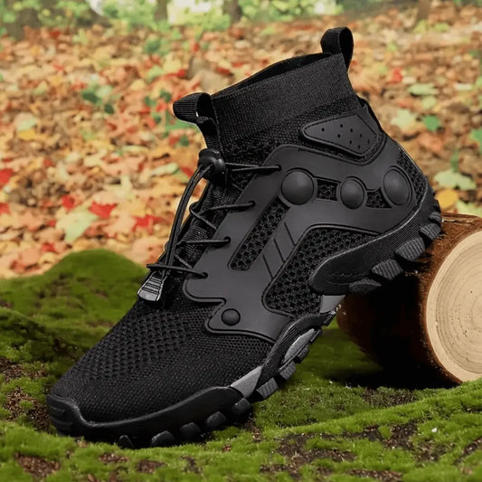 Herresko til utendørs bruk med mesh-materiale - Pustende høy sneakers inspirert av barfotdesign