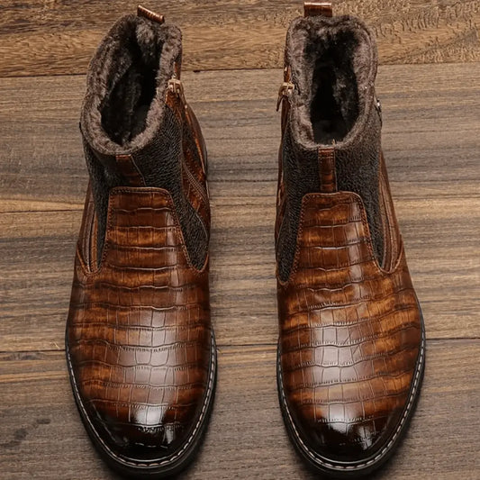 Herresnøstøvler for vinter - Grafisk mønster og varmt fôrede ankelstøvler