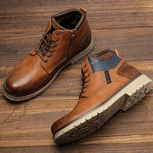 Herresnørestøvler i vintage stil - Varmt fôr for utendørs vintereventyr