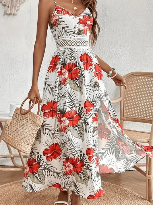 Kvinnens Blomsterprint Kjole med Spagettistropper – Elegant Splittet Maxikjole