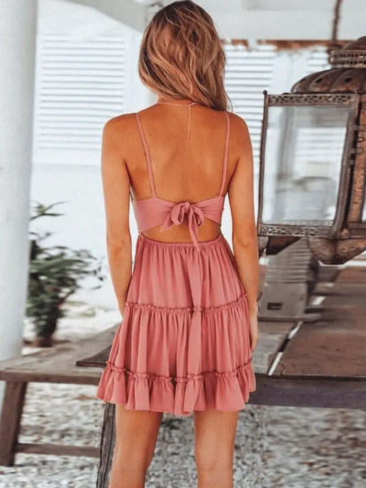 ChicVibe - Elegant Dame V-Hals Spaghetti Stropp Kjole