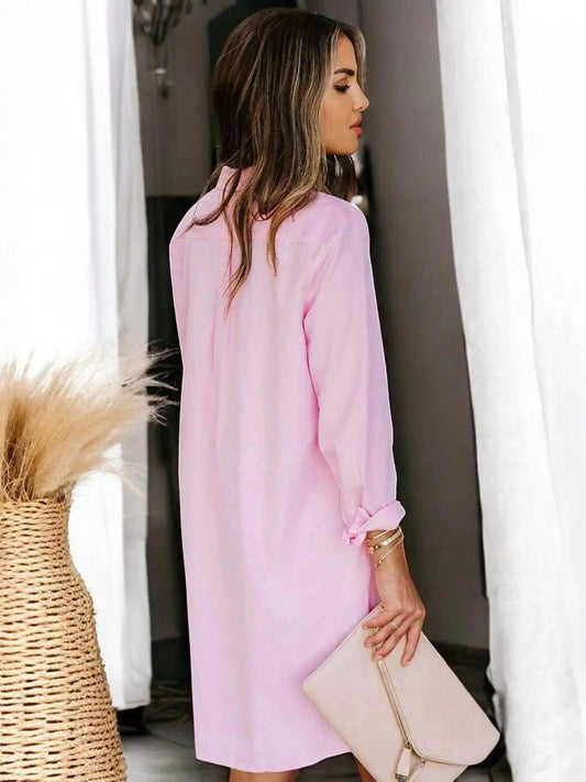 ChicAttire - Skandinavisk Langermet Skjortekjole med Krage