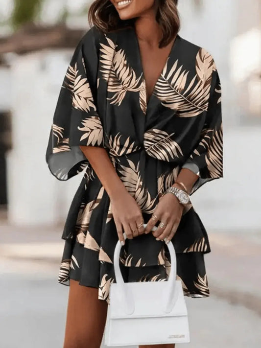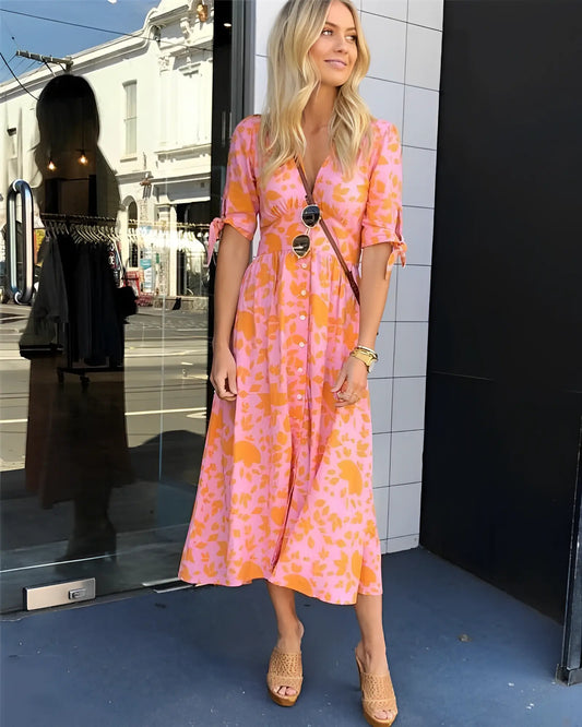 ElegantAura - Stilig Kjole med V-Hals for Hverdagsbruk