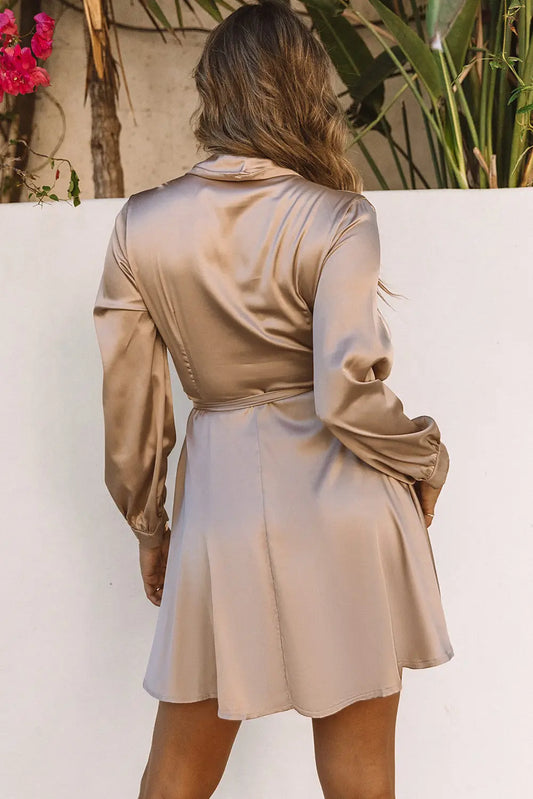 GlamourWave - Stilfull Slå-Om-Kjole i Sateng med V-Hals