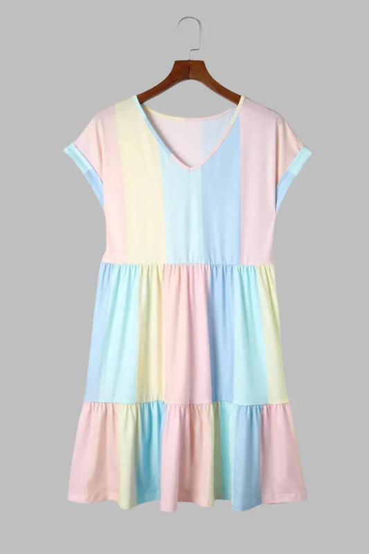 Pastel Drøm Fargeblokk V-hals Minikjole – Lekker & Uanstrengt